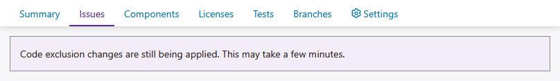 Note: A banner appears at the top of the Issues tab (Portfolio > select an application > select a SAST & SCA project > Issues) while Polaris processes changes.