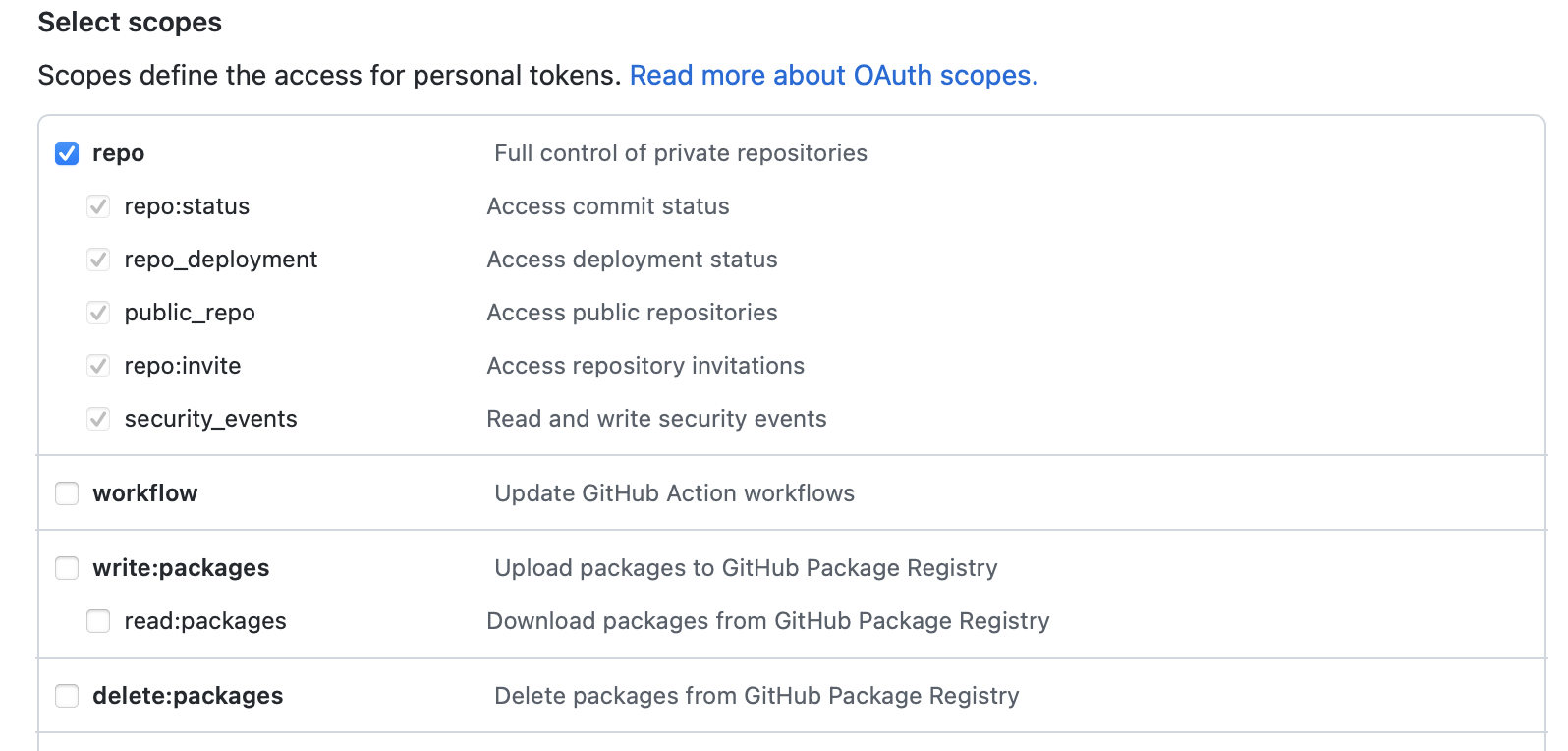 Important: To use the event-based test automation feature or synchronize the repository with Polaris, the token you use requires additional scopes (read:org (under admin:org), and admin:org_hook). See Event-Based Test Automation in Polaris for SCM Repositories and Synchronizing Polaris with your SCM Provider for more information.Note: For more information on creating access tokens, see the GitHub documentation. - Set the token's expiration date. To avoid issues, we recommend No expiration.